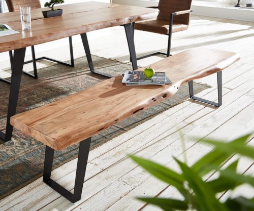 Baumtisch Live-Edge 260×100 Akazie Braun Platte 3,5cm Gestell schräg schwa...