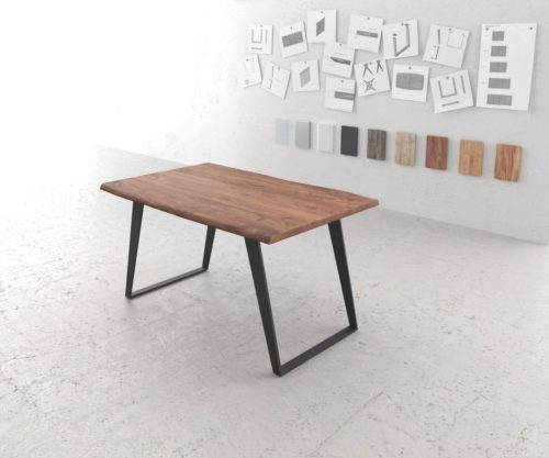 Baumtisch Live-Edge 140×90 Akazie Braun Platte 3,5cm Gestell schräg schwar...